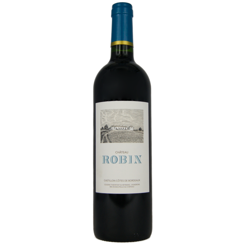 Au cœur de l’appellation, sur un des points culminants de la commune de Belvès de Castillon s’étendent les 13 hectares du vignoble du Château Robin. Ce cru est très ancien, il existe depuis plus de 200 ans. Sept parcelles orientées au Sud Est en amphithéâtre composent ce vignoble sur un terroir argilo-calcaire avec parfois, du rocher et de la crasse de fer. Les raisins, issus de ce fabuleux terroir, sont vendangés à la main et triés à la cueillette. Un deuxième tri intervient au chai, ils sont éraflés et foulés à 80%. La cuverie béton est thermorégulée, trois remontages quotidiens sont effectués et l’élevage se fait à 100% en barriques renouvelés par tiers chaque année.