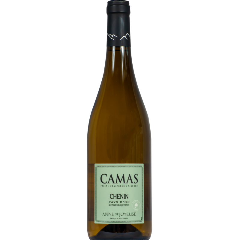 Le Pays d'Oc Chenin Camas Anne de Joyeuse est un vin blanc sec du Languedoc-Roussillon produit à partir du cépage Chenin. Il offre une robe jaune pâle avec des reflets verts. Au nez, il dégage des arômes d'agrumes, de fruits exotiques et de fleurs blanches, avec des notes minérales et de miel. En bouche, il est frais et vif, avec une belle acidité et une finale longue et complexe sur des notes d'agrumes et de miel.