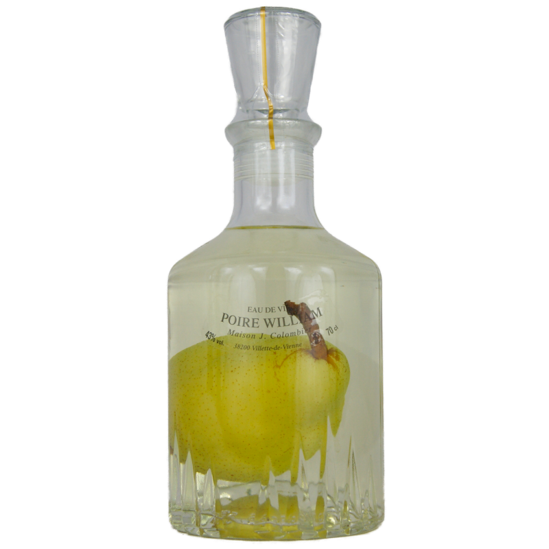 Les poires distillées à la Maison Colombier sont uniquement des poires de variété Williams produites en France. Les poires utilisées pour la fabrication de cette eau de vie, ne sont jamais passées en réfrigérateur et aucun sucre, ni levure n'ont été rajoutés.