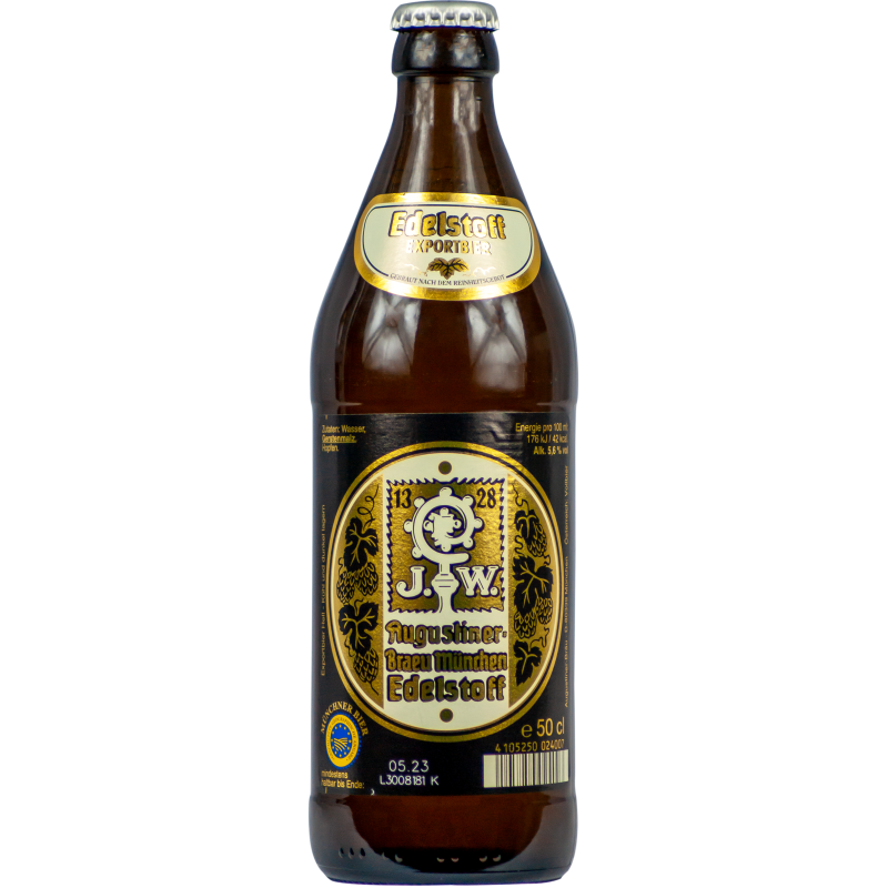 Edelstoff Augustiner est une bière allemande de qualité supérieure brassée par la brasserie Augustiner-Bräu à Munich. Cette bière de style lager est réputée pour sa pureté, sa fraîcheur et son goût raffiné. La Edelstoff Augustiner présente une robe dorée brillante et une mousse blanche dense. Au nez, elle dégage des arômes maltés délicats avec des notes de céréales et de pain frais. En bouche, elle offre une texture légère et rafraîchissante, avec des saveurs équilibrées de malt doux, de houblon floral et une légère amertume. La fin de bouche est sèche et propre.