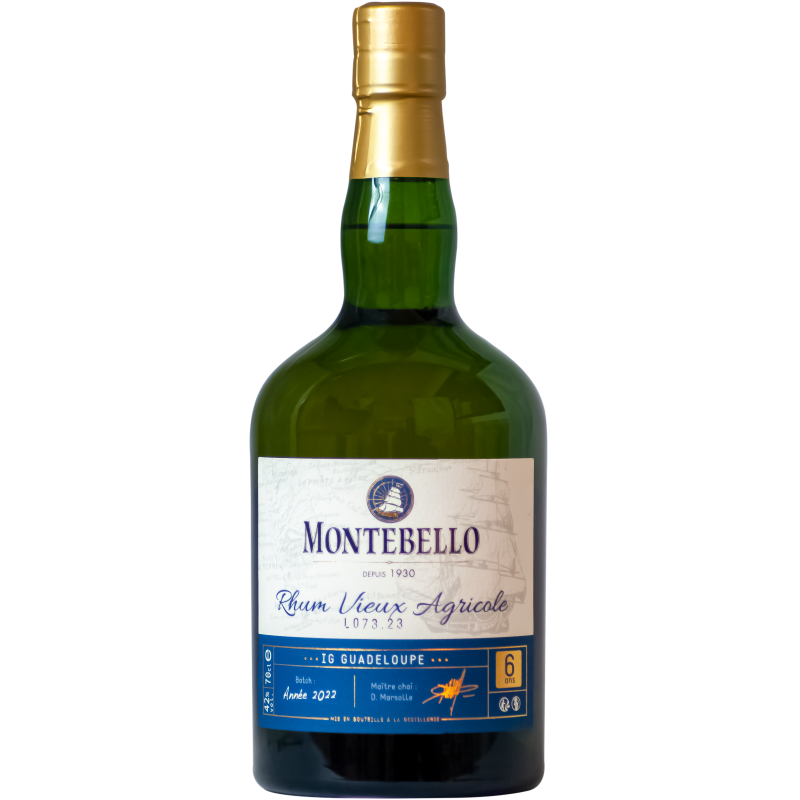 Le Rhum Montebello 6 ans est un rhum agricole de qualité, produit dans la région de la Martinique, une île des Caraïbes réputée pour son rhum. Ce rhum est élaboré à partir de jus de canne à sucre frais, qui est fermenté, distillé et vieilli pendant 6 ans en fûts de chêne. Cette période de vieillissement confère au rhum une complexité et une rondeur remarquables. Au nez, il révèle des arômes floraux, de fruits tropicaux, de vanille et de notes boisées. En bouche, il offre une texture soyeuse, des saveurs équilibrées de canne à sucre, de fruits mûrs, de miel et d'épices, avec une finale persistante et douce.